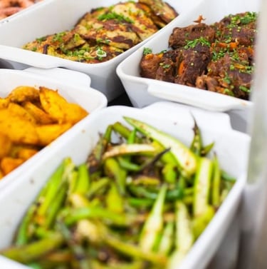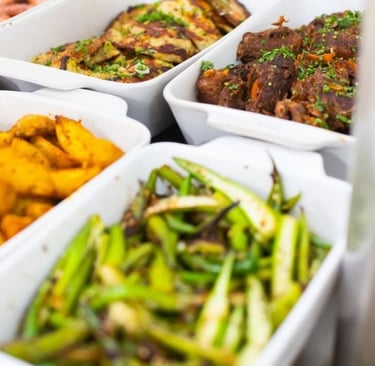 Escolha entre o buffet por quilo, pratos executivos prontos para servir ou marmitex gourmet para levar.